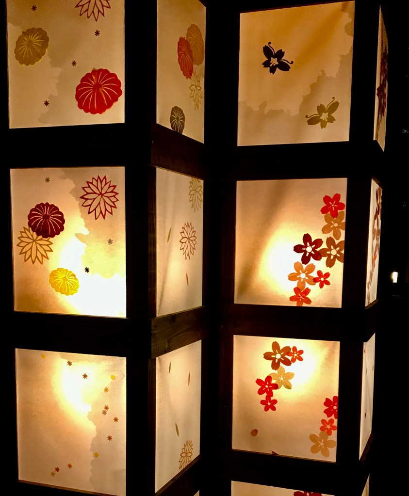 As we moved around the park, in true Japanese fashion we were ushered around, in well mannered lines by ushers with their red glowing batons. They were necessary to keep the flow of the crowd moving but it made it difficult to take pictures. If you are an iPhone photographer, its a dream but if you hoped to use a tripod then you may want to rethink your entrance time. At the start of the route were some beautiful washi paper lanterns.