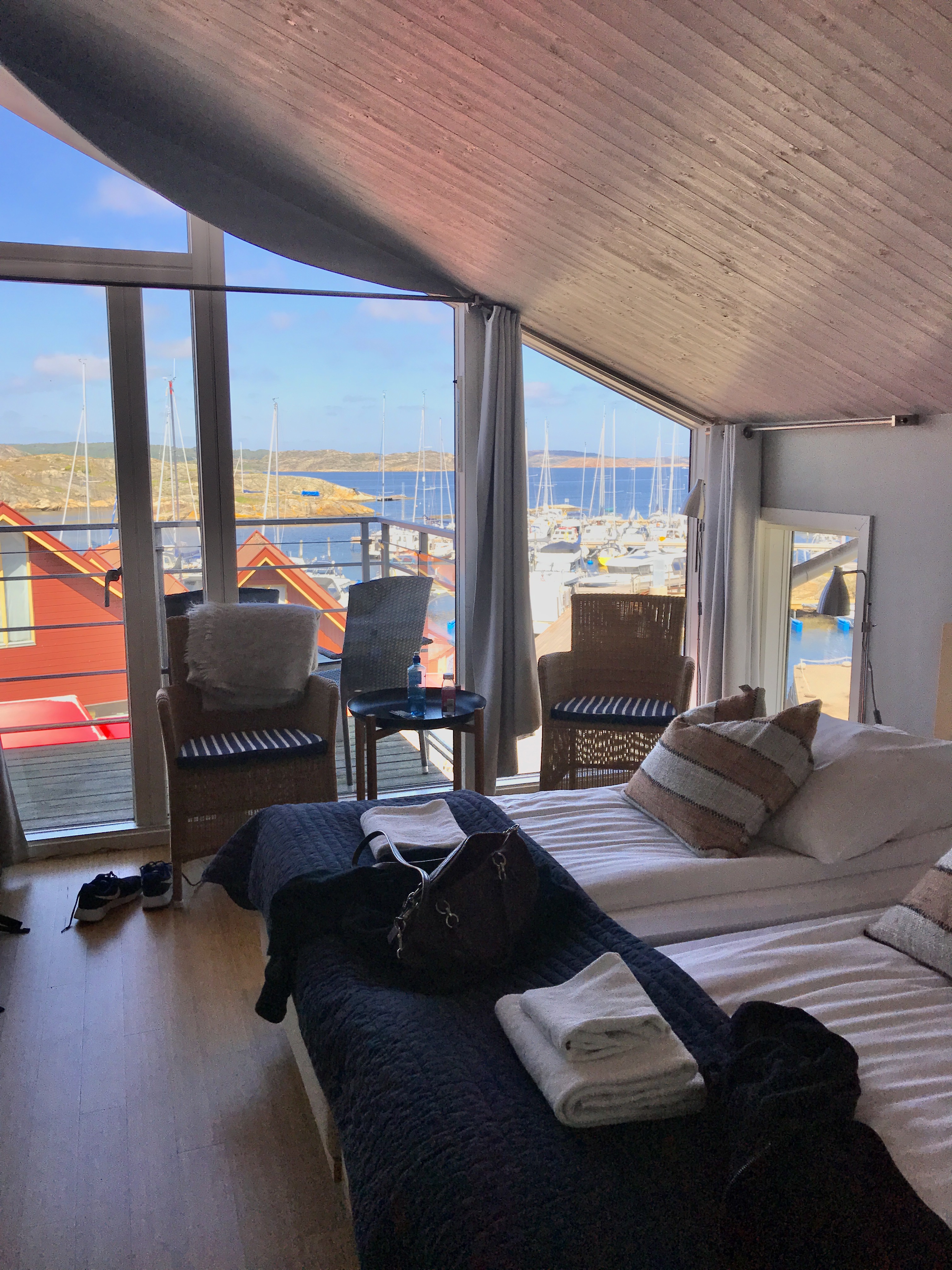 We had booked 3 nights at the Björholmen Marina Hotel located at the very north of the island. We were given a double room with a balcony over looking the marina which was a great place to sit with a cup of coffee and relax.
