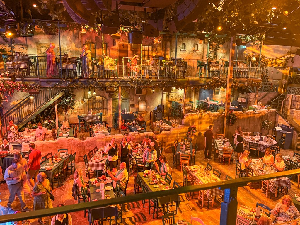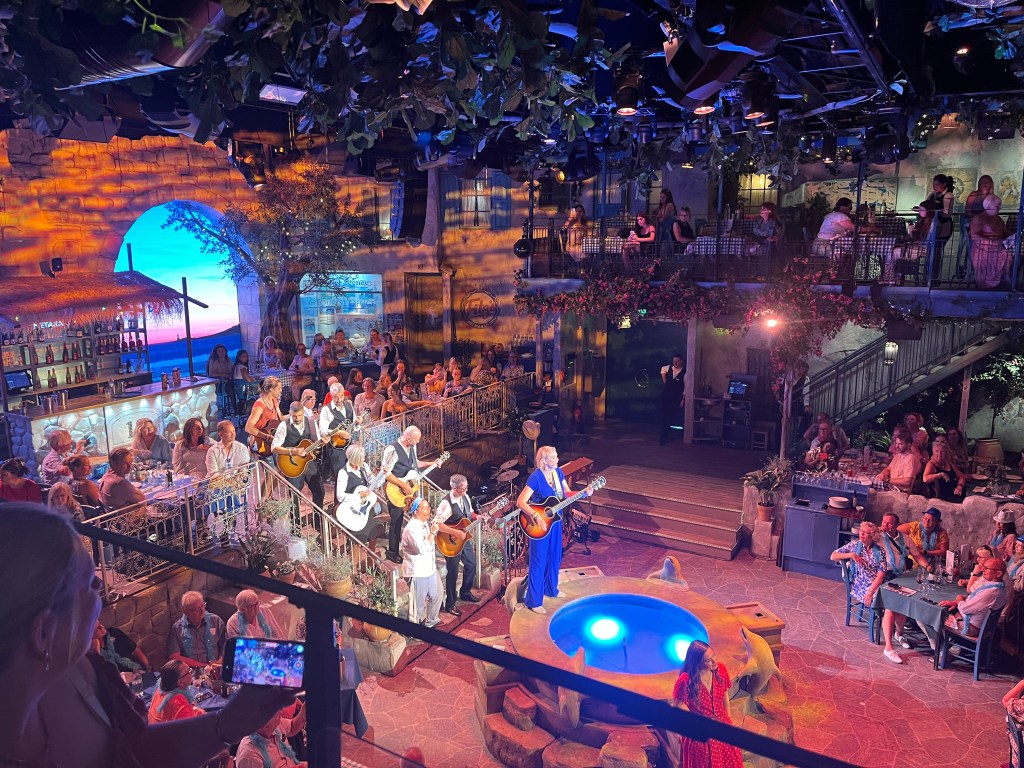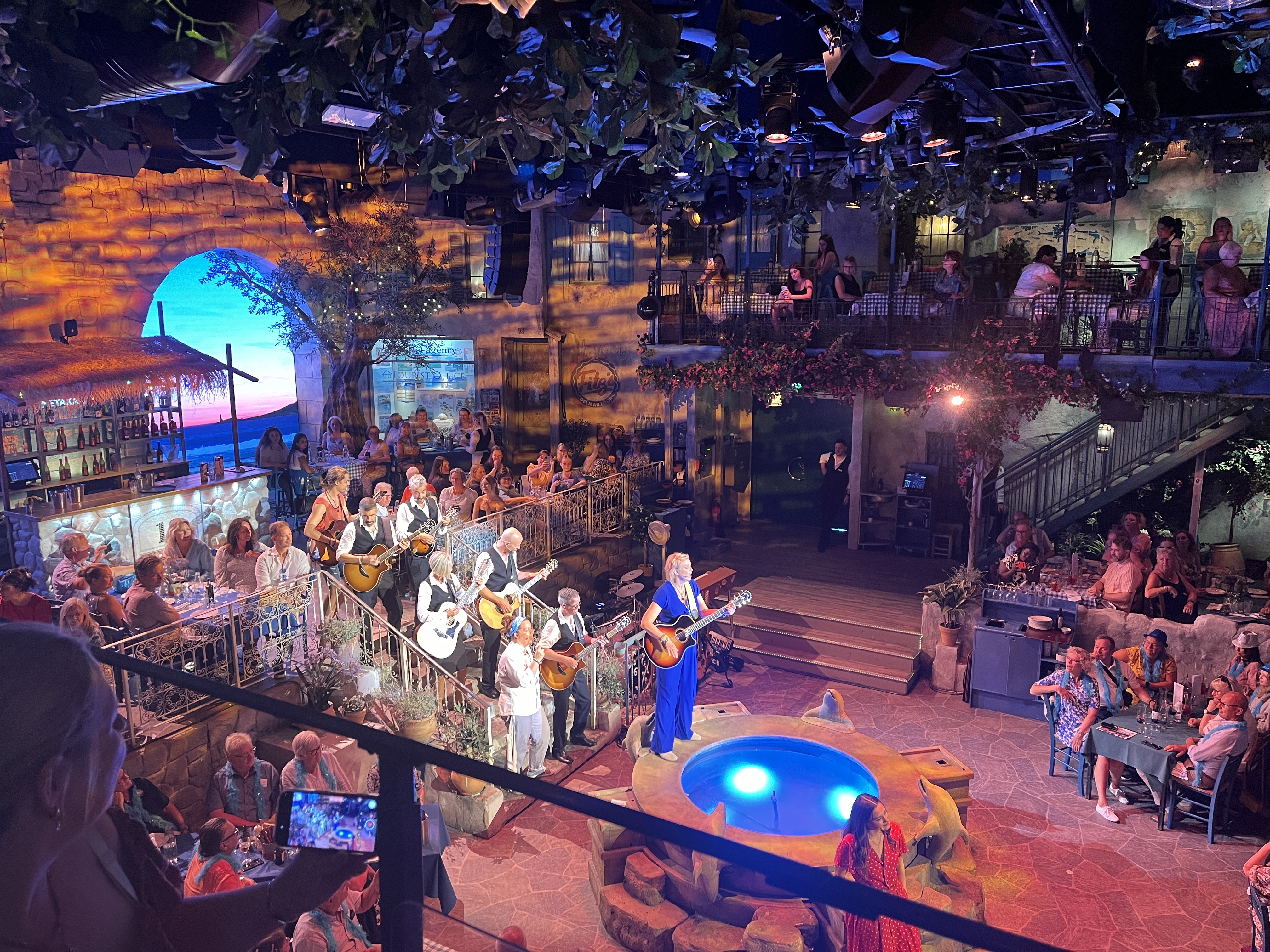 When you enter the tavern setting, it is surprising how big the room is and the attention to detail that has been spent. You honestly feel for the entirety of the show that you have been transported to Greece and the background cleverly changes with the time of day as the show so you are completely engrossed.