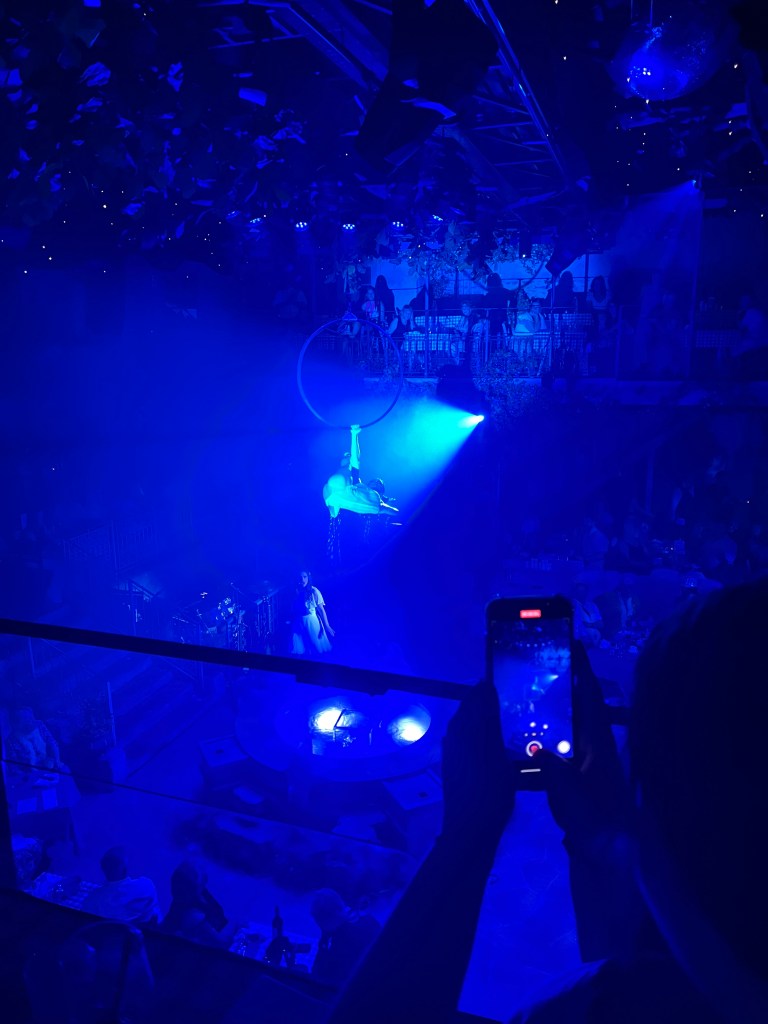 You are guided to the bar, as soon as your tickets are checked for a free shot before being directed to your predetermined seat. Ours was located on a raised veranda so we could watch the show from above which we loved. We were free to stand up and dance without having to worry about people sitting behind us.