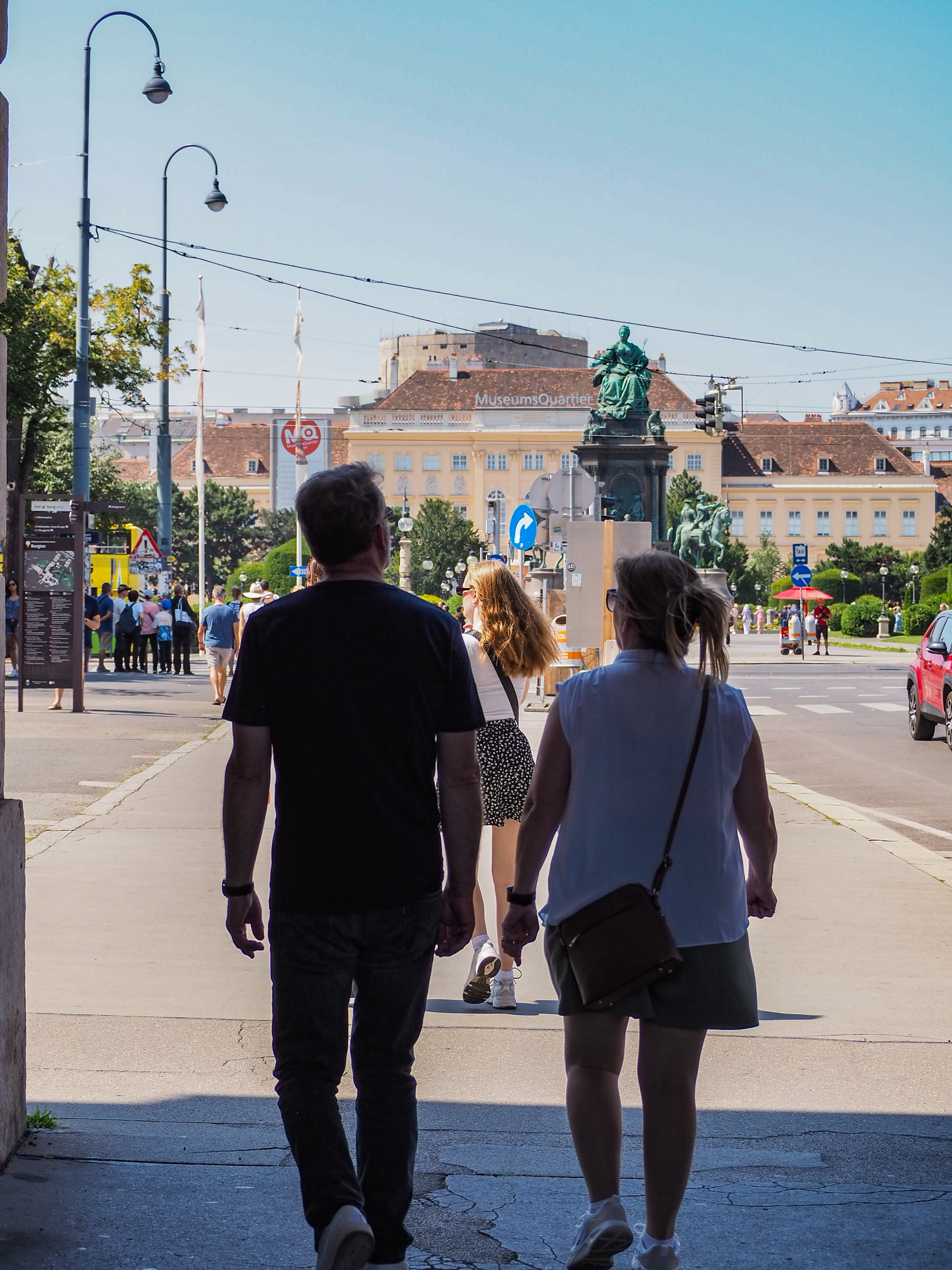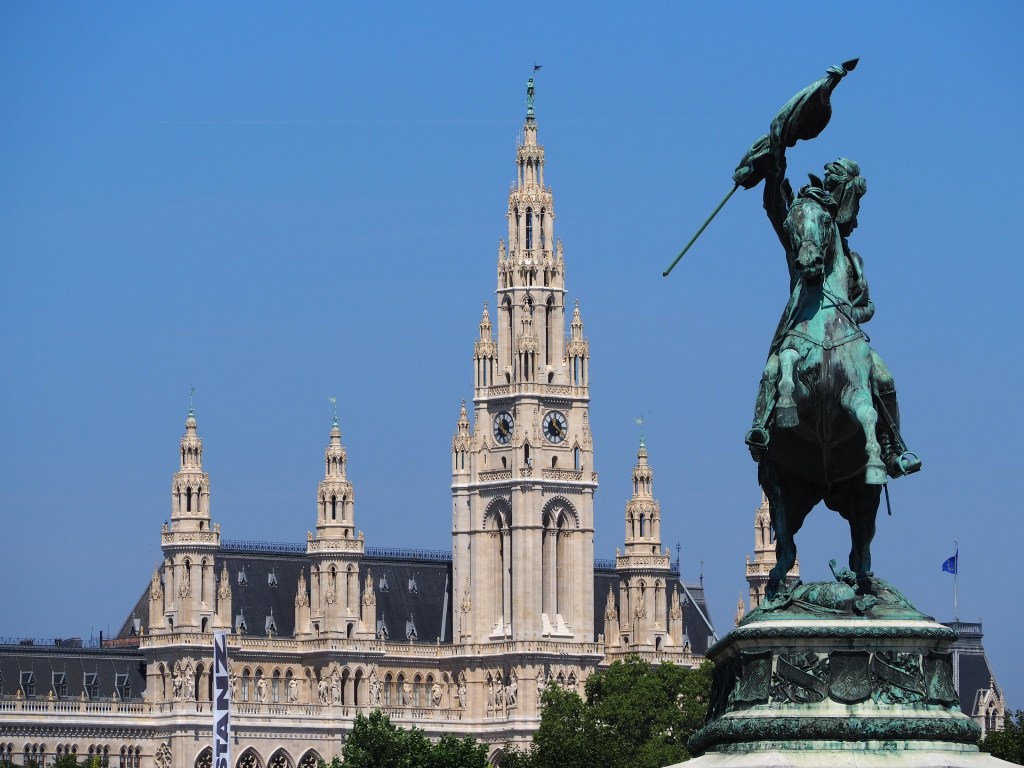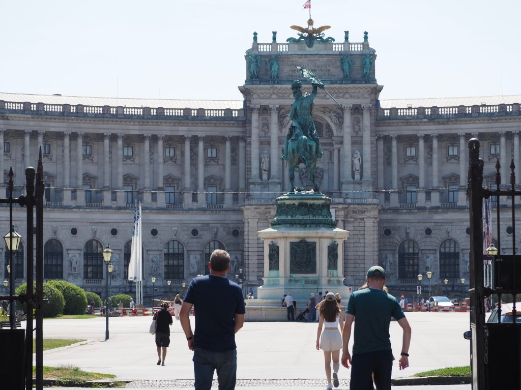 Vienna is a stunning city that is noticeably clean and full of grand architecture. On day one we decided to go for a walk heading towards the museum quarter, which was both a great idea because it helped us get our bearings but also stupid as the temperature that day was 34 degrees. We left early to avoid the heat strolling down from Schottentor station past the town hall, the Austrian Parliament building then cutting through Volksgarten to the Hofburg.